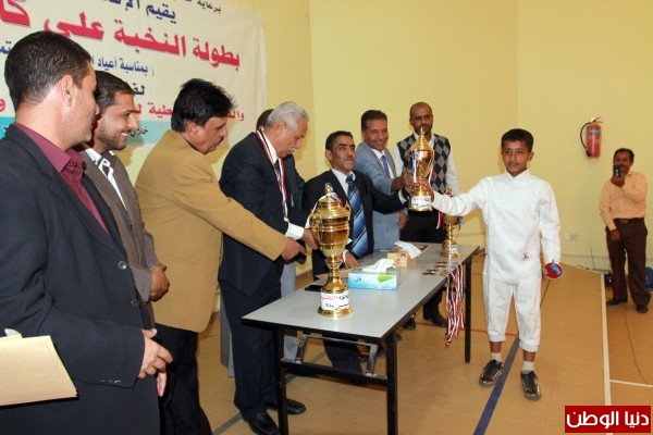 كرم نائب وزير الشباب والرياضة صباح أمس على صالة نادي بلقيس الرياضي الثقافي ابطال بطولة نخبة المبارزة للأشبال والناشئين والتي نظمها الاتحاد العام للعبة بمشاركة خمسة مراكز مثلهم ثلاثون لاعبا تنافسوا على كأس الاستقلال الــ30 من نوفمبر المجيد.