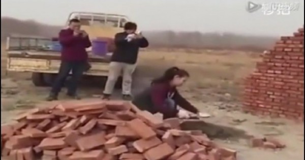 أثارت فتاة دهشة وإعجاب الجميع، بمهاراتها في ترتيب قوالب الطوب الأحمر الخاصة بالبناء، عن طريق تسديدها القوالب بإلقائها نحو الحائط المراد إقامته.