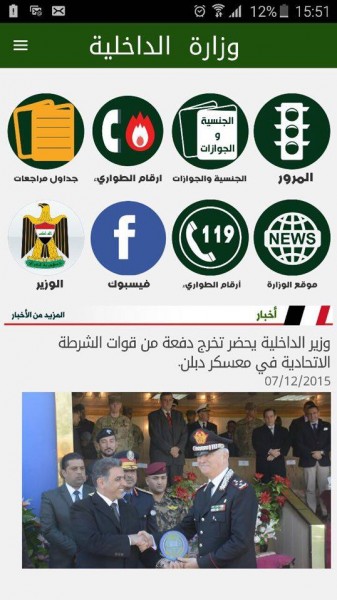 انتهت وزارة الداخلية من تصميم تطبيقاً جديد لنظام الابل والاندرويد يتيح لمستخدميه الاطلاع التفصيلي عن نشاطات وفعاليات وزارة الداخلية ومعرفة مؤسساتها الأمنية والخدمية التي ترتبط ارتباطاً وثيقاً بالمواطن العراقي داخل وخارج العراق.