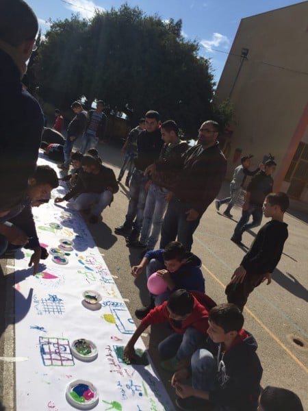 يذكر أن النشاط اشترك به المعلمون والطلبة على حد سواء ، وكان فاعلا ومغايرا ومعبرا عن نفسيات الطلبة المليئة بشعور الاستهجان من الصمت العربي والدولي لما يجري لأطفال فلسطين.