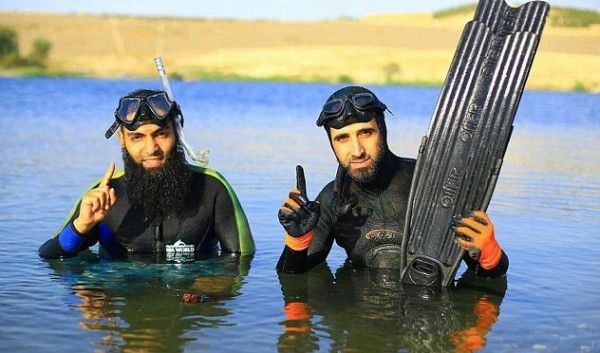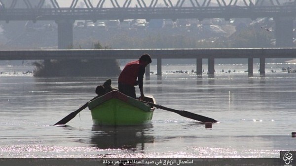 وتظهر الصور عناصر التنظيم وهم يمارسون صيد السمك ومن ثم يقومون بشواء صيدهم، ويصنعون القوارب الخشبية ويمارسون الغوص في نهر الفرات.