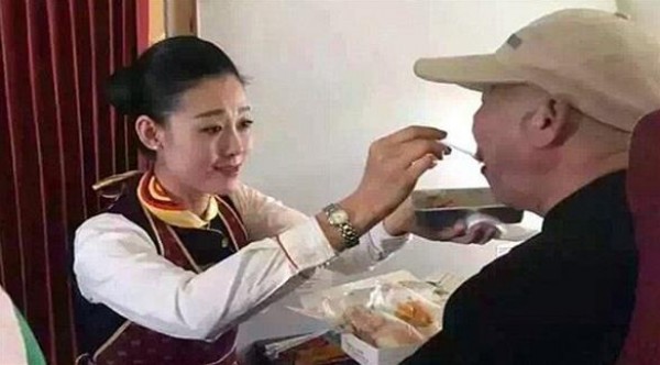 تحولت مضيفة طيران إلى نجمة على مواقع التواصل الاجتماعي في الصين، وذلك عقب تداول مجموعة من الصور التي تظهر فيها وهي تطعم مُسنّاً لا يستطيع تناول الطعام بيديه، وهي جاثية على ركبتيها بالقرب من مقعده في الطائرة.