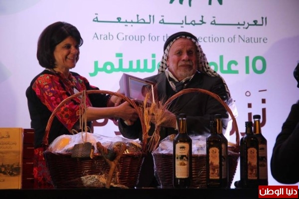 وبدورها قالت م. رزان زعيتر رئيسة الجمعية العربية لحماية الطبيعة بأن الفلسطيني المنتمي لقضيته الإنسانية والقومية ، والصامد على أرضه بمقدار حبه لوطنه وشعبه ، ويضحي بقوة عزيمته وصلابة إرادته لإسترجاع أرضه المغتصبة يستحق منا الإجلال والتكريم في المحافل العربية والدولية كي يصل صوته المكلوم الى العالم كافة بهدف فضح جرائم وإنتهاكات الإحتلال الإسرائيلي لفلسطين في كل مجالات الحياة ، وإظهار حقيقة ما يحصل مع الشعب الفلسيطيني ومحاكمة ممارسات الاحتلال معه . وأكدت زعيتر بأن ما تقوم به العربية هو جزء لا يتجزأ من واجبها تجاه قضيتها التنموية العربية لإنها تعتبر نفسها أداة لأسناد المزارع الفلسطيني على وجه الخصوص في تأدية رسالته الوطنية المتمثلة في تعزيز صموده على أراضيه المهددة بالمصادرة .