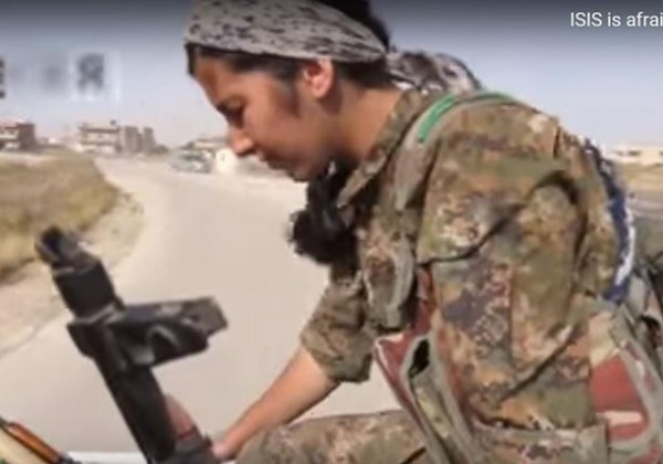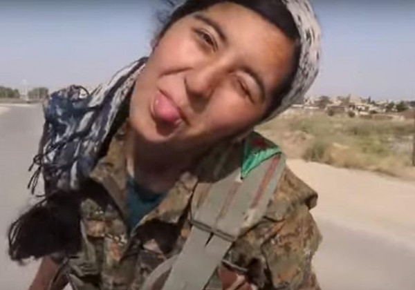 ويوضح الفيديو لقطات من حياة تلك الفتاة في ميدان القتال وكيف تحولت إلى كابوس داعش المرعب، مشيرا إلى أنها تقاتل في صفوف وحدات حماية الشعب الكردية التي تحارب داعش في سوريا.