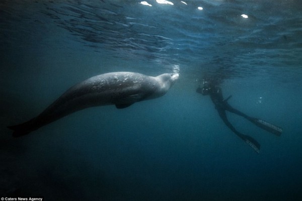 حول كلب البحر جلسة التصوير لمزيج من المرح وعدم الرضا؛ حيث لم يستقر لالتقاط الصور، التي ظهرت عفوية، وانطلق عدد من كلاب البحر حول الغواصين بعد الاطمئنان؛ لكونهم سلميين يلعبون ويمرحون دون توقف.