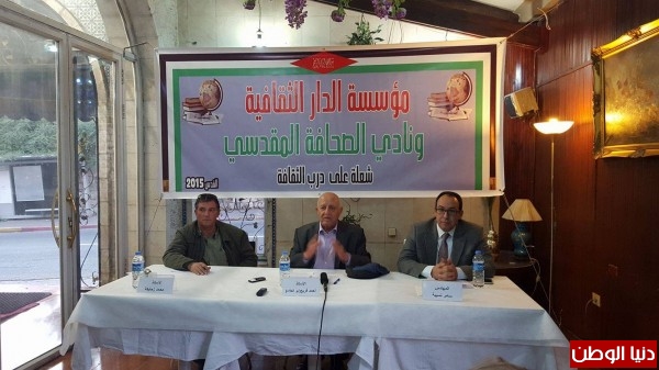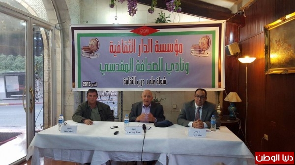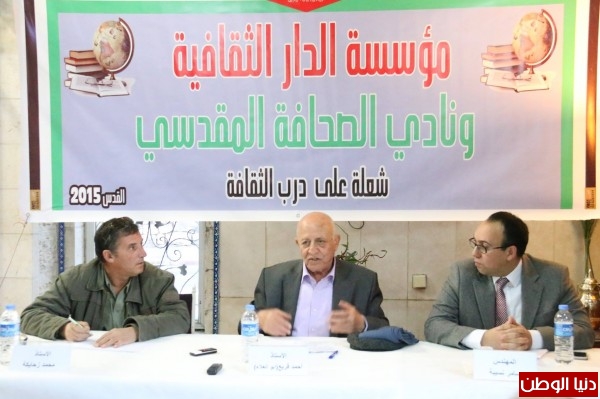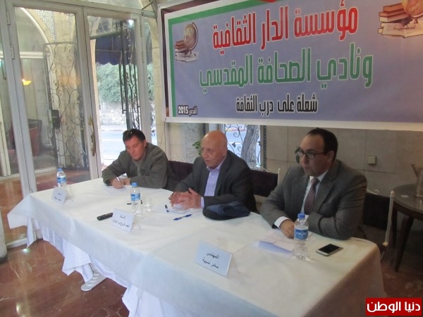 وكان المهندس سامر نسيبة رئيس الدار الثقافية للتنمية قد استهل اللقاء بالقول ان القضية الفلسطينية تمر الان في اصعب مراحلها، واننا مقبلون على تغيير الاتجاه بصورة كاملة ربما في ظل افشال حل الدولتين . واعرب عن قلقه في غياب تحضير ورسم بديل لذلك خصوصا في ظل الانهيارات المتتابعة في الدول العربية . وادار اللقاء الاعلامي محمد زحايكة .