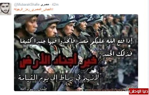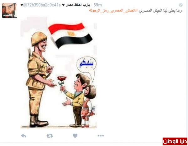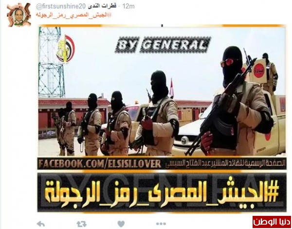 #الجيش_المصري_رمز_الرجوله يتصدّر تويتر في مصر ويشكر الجيش لمحاربته الارهاب