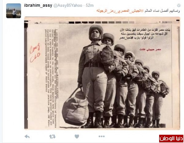 هاشتاج #الجيش_المصري_رمز_الرجوله الذي تصدّر ترند موقع تويتر في مصر وشارك عبره عشرات الالاف من المغرّدين ، دُشّن لشكر الجيش على ما يقدمه فتحوّل الهاشتاج لذكر ما قام ويقوم به الجيش عربيا وعالميا وليقارن بين الجيش االذي حافظ على مصر بعيدا عن الارهاب "العنيف" وبين الدول التي وقعت تحت الارهاب الذي لا يفرّق بين بريئ وغيره، مثمّنين في الوقت نفسه مواقف وتضحيات جنود مصر لحماية الحدود والدفاع عن أمنها وسلامتها