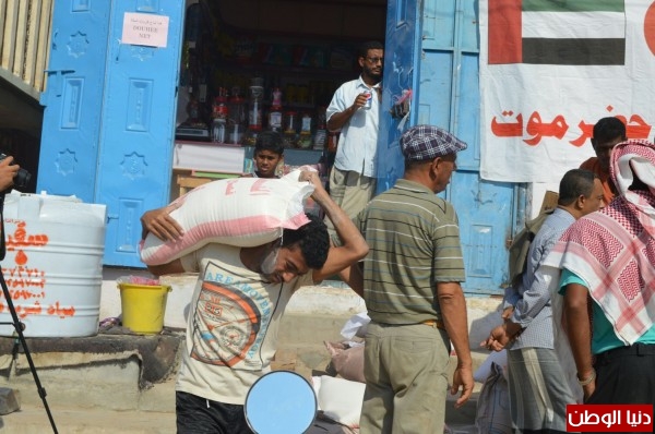 تتواصل قوافل المساعدات الخيرية المقدمة من فريق الهلال الاحمر الأماراتي لإغاثة أهالي حضرموت إلى مختلف احياء منطقتي الديس والشرج بمديرية المكلا وذلك في سياق الجهود الحثيثة التي تبذلها دولة الامارات العربية المتحدة في ظل تفاقم الأوضاع الإنسانية التي تعصف بسكان حضرموت ، في إطار حملته الأغاثية الإنسانية والتي تحمل عنوان “مشروع توزيع سلة إغاثة حضرموت”، في مرحلته الثانية لإغاثة 45 ألفاً من الأسر المحتاجة والمتضررة من الأوضاع التي تشهدها البلاد .