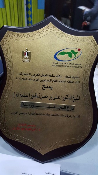 منح الاتحاد العام للمنتجين العرب متمثلا في رئيسه دكتور ابراهيم ابو ذكري درع الجمهورية للشيخ الدكتور علي الناقور رئيس مجموعة الناقور العالمية للاستثمار.
