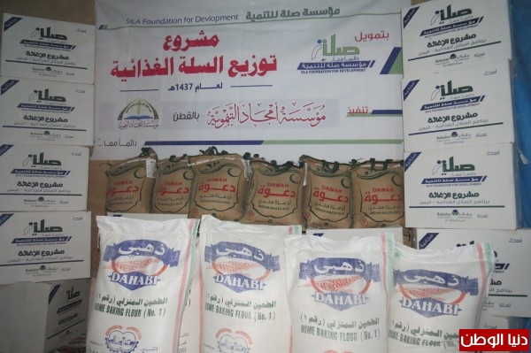 بتمويل من مؤسسة صلة للتنمية وزعت مؤسسة أمجاد التنموية يوم الأربعاء السادس عشر من ديسمبر الجاري ( 100) سلة غذائية للأسر المحتاجة بمديرية حريضة محافظة حضرموت استفاد منها (700) فرد موزعين على مائة أسرة .