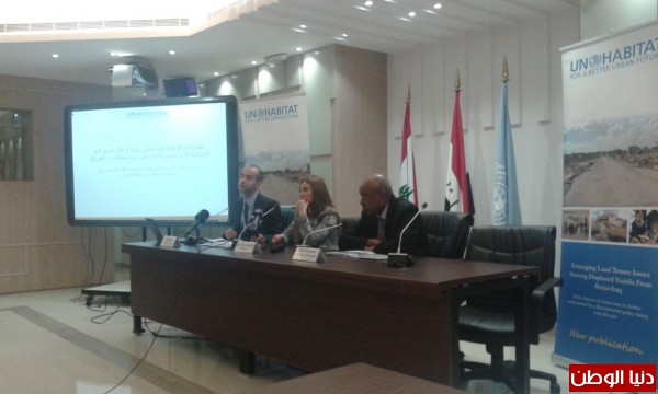 وكانت منظمة (HABITAT) قد اطلقت تقريرها المعنون (القضايا الملحة في مجال حيازة الاراضيفي اوساط الايزيديين النازحيم من سنجار ـ العراق) والذي يقع في 34 صفحة ويضمدراسات ومعلومات وخرائط تلخص الوضع الايزيدي في سنجار منذ نحو 40 عاما بضمنهاالاثار المترتبة على اجتياح تلك المناطق من قبل عصابات داعش الارهابية.