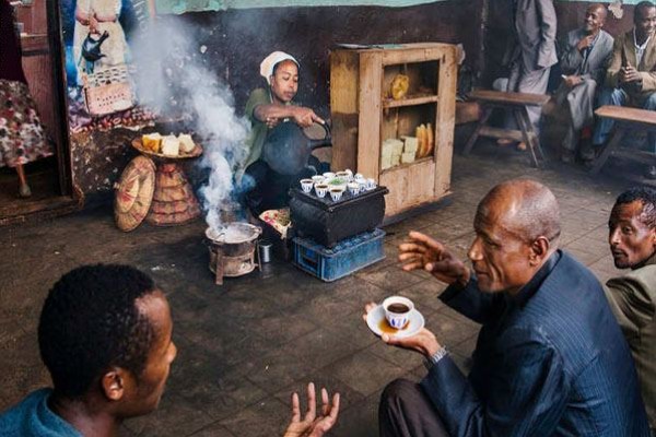 مقهى شعبي في أثيوبيا لتقديم القهوة