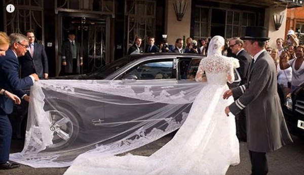 شاهد بالفيديو موقف محرج بزفاف شقيقة باريس هيلتون على ولي عهد بريطانيا والذى تكلف مليار دولار، حيث علق فستان العروسة تحت إطار السيارة التي تقلها .