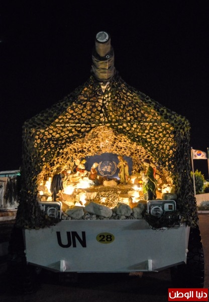 حوّل جنود القوة الدولية اليونيفيل الايطالية في مقر قيادة القطاع الغربي في بلدة شمع بجنوب لبنان احدى الاليات المدرعة(blindocentauro) التي تحمل مدفع 105 الى مغارة للاحتفال بعيد الميلاد بعيدا" عن الوطن.