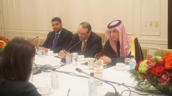 جاء ذلك عقب اجتماع وزير الخارجية السعودي، عادل الجبير، أمس الجمعة، بنظيره الصيني، وانغ يي، وذلك على هامش اجتماع المجموعة الدولية لدعم سوريا المنعقد بنيويورك.