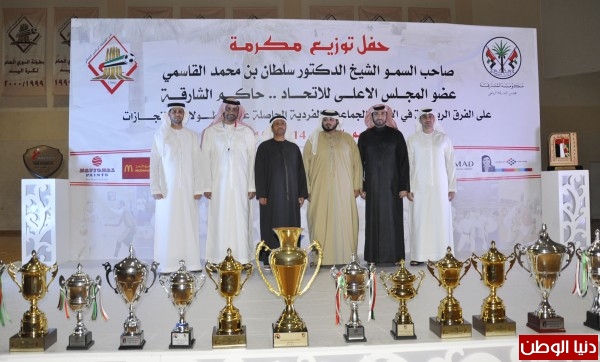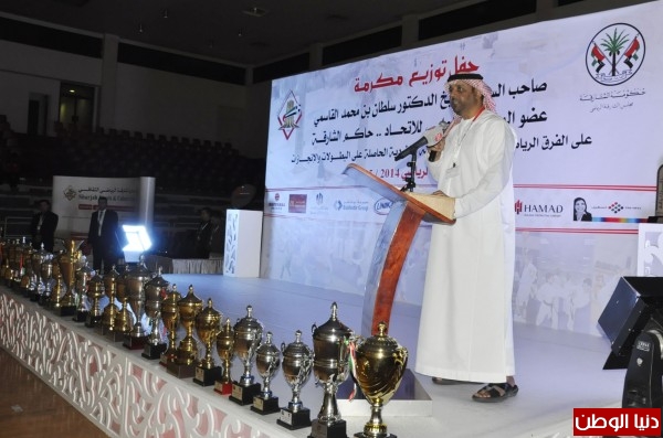 الشيخ أحمد أل ثاني يكرم أصحاب الانجازات بمكرمة حاكم الشارقة في نادي الشارقة الرياضي