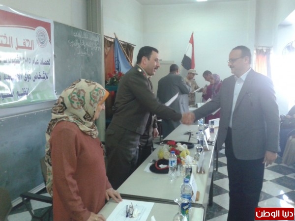 واشارحاتم قطب مقرر فرع المجلس القومى لشئون الاعاقين بالمحافظة – خلال كلمته - الىحقوق الاشخاص ذوى الاعاقة والتى نص عليها الدستور المصرى ويتم تنفيذها على ارضالواقع من خلال جميع اجهزة ومؤسسات الدولة بالشراكة مع الجمعيات الاهلية مشيدابالدور الذى توليه القيادات السياسية والقوات المسلحة بتدريب ابنائها من الاشخاصذوى الاعاقة مطالبا اولياء الامور وجميع القيادات التنفيذية ومسئولى الجمعياتالاهلية بالمشاركة فى حملات توعية المواطنين بتسجيل ابنائهم من ذوى الاعاقة ضمنحصر الجهاز المركز للتعبئة العامة والاحصاء حتى يتثنى لهم توفير احتياجاتهم ومنحهمالفرص فى التدريب والعمل ضمن الخطط الحالية والمستقبلية .