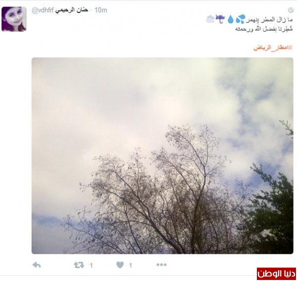 الهاشتاج الذي غرّد عليه الآلاف منذ فجر اليوم ليتداول الجميع صور وفيديو لجمال مدينة الرياض خاصة مع الأمطار التي تتساقط حتى اللحظة.