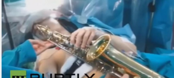 منوعات فيديو|موسيقي يعزف الساكسفون خلال عملية جراحية لإزاله ورم من دماغه ! 2015-12-24 رابط مختصر: تابعنا أيضا عبر انستجرام instagram/alwatanvoice