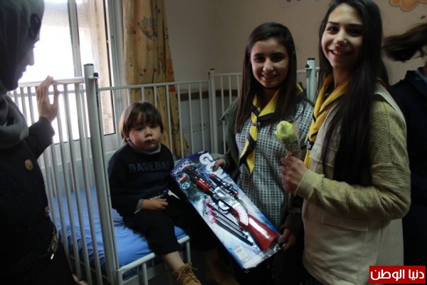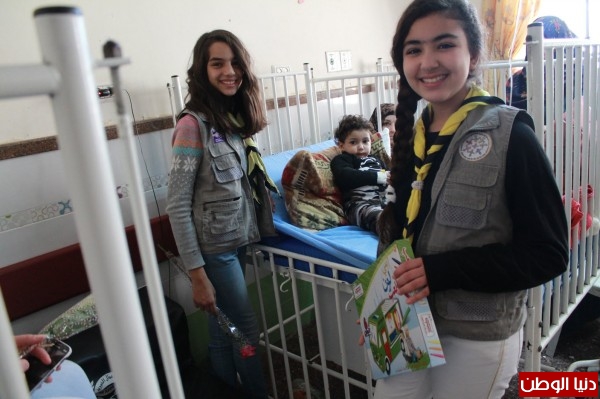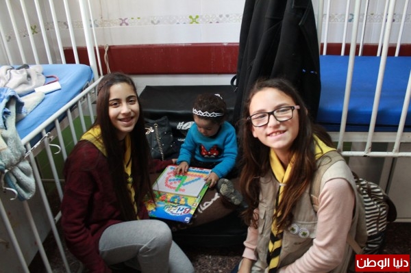 زارت مرشدات الصداقة الفلسطينية التابعة لبيت الصداقة الفلسطيني في ذكرى المولد النبوي الشريف وعيد الميلاد المجيد قسم الأطفال في مستشفى رفيديا ووزعت الهدايا على الأطفال والأزهار على أهاليهم بالإضافة للحلويات على الطاقم والزوار في المستشفى.يأتي هذا النشاط ضمن خطة المجموعة بتفعيل دور المنتسبات اتجاه زملائهم الأطفال الذين يحتاجون للعناية والرعاية، حيث رحبت إدارة المستشفى وقدرت مبادرة المشاركات ولطفهن بالتعامل مع الأطفال، كما شارك الطاقم الإداري وطاقم الإرشاد الاجتماعي بالجولة في قسم الأطفال