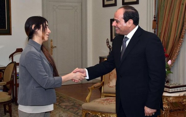 التقى الرئيس عبد الفتاح السيسي، اليوم السبت، بالمواطنة العراقية الإيزيدية، نادية مراد، التي استطاعت التخلص من أَسْر تنظيم داعش لها.