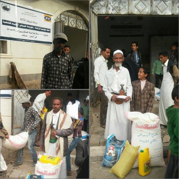 وزعت مؤسسة الرائدة حورية عباس المؤيد يوم الجمعة بصنعاء (100 سلة غذائية) مساعدة للأسر المتضررة من الاحداث في اليمن بدعم من شركة ام تي ان يمن MTN YEMEN .
