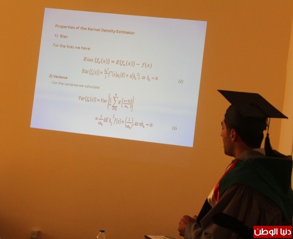 ناقش الباحث يوسف عطاطره، طالب الرياضيات التطبيقية في كلية الدراسات العليا في الجامعة العربية الأمريكية، رسالته للحصول على درجة الماجستير، والتي حملت عنوان " دراسة محاكاة لجودة المطابقة لاختبار الفرضيات المبني على اقتران كثافة النواة".