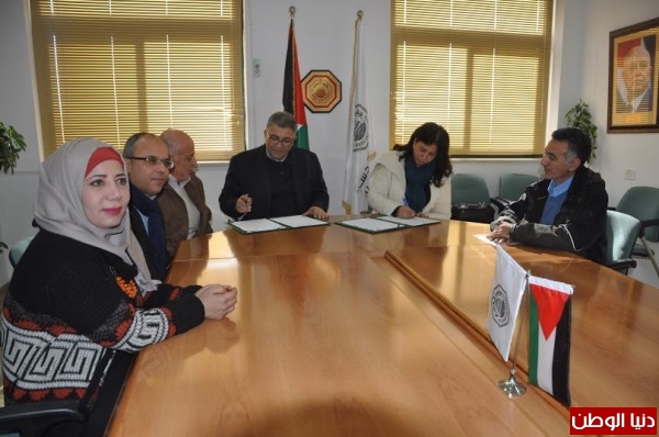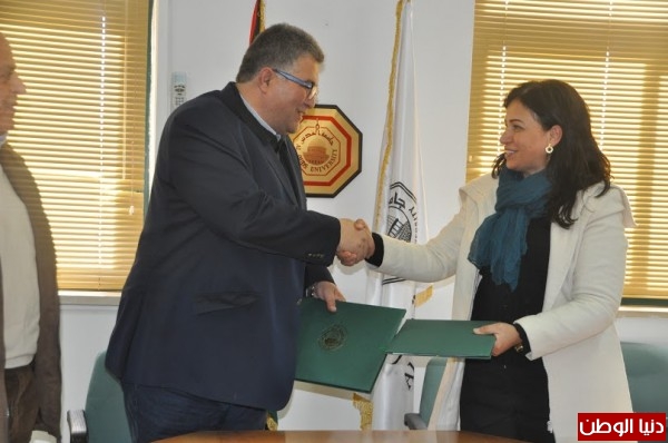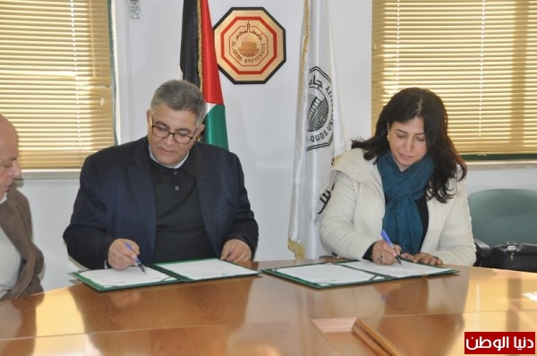 ووقع الإتفاقية عن جامعة القدس رئيس الجامعة أ.د عماد أبو كشك ، ورئيسة مؤسسة صناع الأمل فدوى عباد .