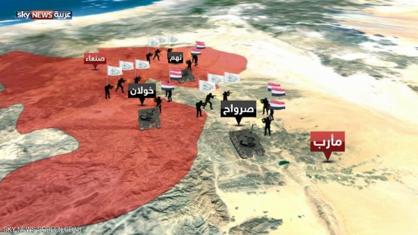 وقالت مصادر عسكرية لـ"سكاي نيوز عربية" إن القوات الشرعية حققت مزيدا من التقدم في الجوف، التي تحدها من الشرق السعودية، ومن الجنوب محافظتي مأرب وصنعاء ومن الغرب عمران وصعدة.