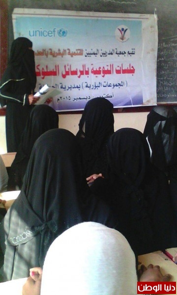 تتواصل بمدريتي جبل راس والحجيلة بمحافظة الحديدة غربي اليمن فعاليات برنامج مشروع التوعيه بالرسائل السلوكية والذي تنفذه جمعية المدربين اليمنيين، بتمويل من اليونسف وبالتنسيق مع السلطة المحلية.