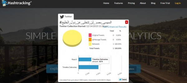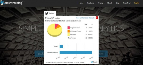 وحسب Hash-Tracking، احتل الوسم الأول 19578 واجهة مستخدم منذ صدوره على "تويتر".