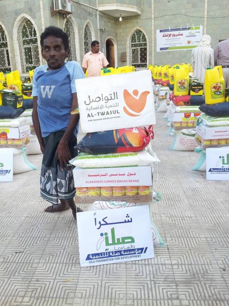 مؤسسة التواصل للتنمية توزع مواد إغاثية لذوي الأحتياجات الخاصة والمعاقين بالحديدة
