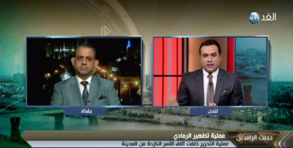 واضاف فاضل أبو رغيف الخبير العسكري العراقي، خلال لقاءٍ له ببرنامج "حديث الرافدين"، المذاع على قناة "الغد العربي" الإخبارية، مع الإعلامي علاء الشيخ، أنه عقب تحرير مركز الأنبار والرمادي لم يتبقي منها سوى منطقة الشرقوبالنظر