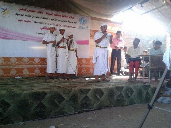 اختتمت مؤسسة بنات الحديدة التنموية الاجتماعية فعاليات الحفل الختامي ضمن مشروع الاتصال من اجل التنمية تحت شعار " حمايتهم غايتنا " بدعم من منظمة اليونيسيف ، حيث هدف المشروع الى تغير سلوك المجتمع الى سلوك ايجابي صحي من خلال اعطى ثلاث رسائل للمجتمع وهي العودة للمدرسة النظافة الشخصية والحميات وكيفية تخزين المياه - الحماية من مخاطر الالغام والقصف وكيفية الوقاية منه قبل واثناء وبعد القصف.