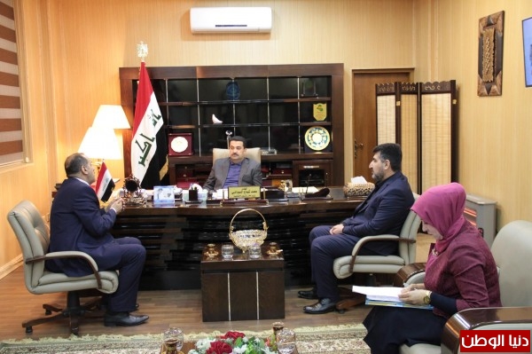 بحث وزير التجارة وكالة المهندس محمد شياع السوداني مع مدير الشركة العامة للنقل البحري المواضيع ذات الاهتمام المشترك ومن ضمنها نقل مفردات البطاقة التموينية .