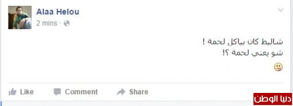 وتساءل الفنان الفلسطيني الملتزم قاسم النجار عن مصير شاؤول أرون معلقاً "إذا "شاليط" كان مقضيها شوي لحمة .. السؤال القوي #شاؤول_ارون شو هسا بشوي ؟؟