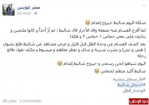 لم تمنع بوستات التشجيع للمقاومة والاستهزاء بالامن الاسرائيلي من وجود معارضة لنشر الفيديو من الاساس لاعتبارات امنية ومنهم من ربط معاناة قطاع غزة بالحياة الرغدة التي عاشها شاليط .