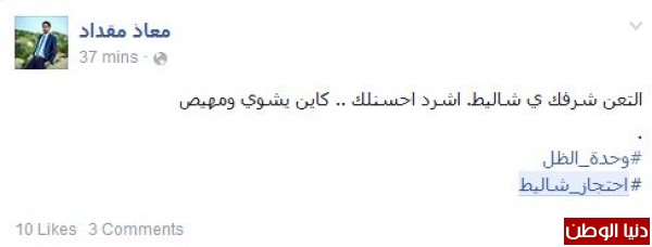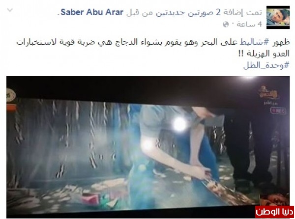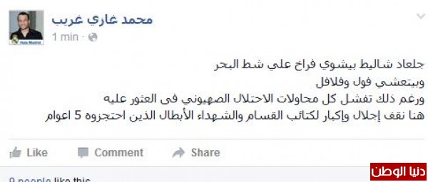 "أجواء ممتعة مع أبطال القسام، أنا بستنى فيديو شاليط وهو يأكل بوظة من عند كاظم بالرمال، بعد ظهور الجندي الأسير السابق شاليط يشوي اللحم على شاطئ بحر غزة يتوقع العثور على الأسير شاؤول آرون في مطعم فلافل، غزة 5 سنين وفيها شاليط ويلي دور كان عبيط، يعني ولا موساد ولا مخابرات ولا أي اسم فش بعد فخر الصناعة الفلسطينية"، هذه الكلمات اجتاحت مواقع التواصل الاجتماعي موجهين بها رسالة لأمن الاحتلال الإسرائيلي، أنهم فشلو استخباراتيا في الحصول على معلومات حول أسر شاليط.