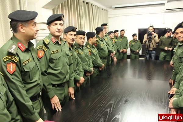 اللواء الركن جهاد جيوسي يقلد كوكبة من ضباط الارتباط العسكري الفلسطيني الانواط والميداليات العسكرية