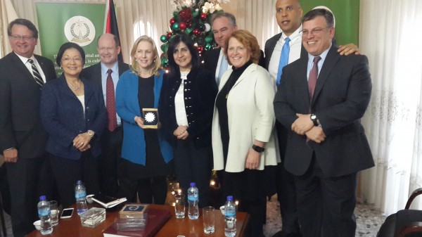 ومن جانبها شكرت رئيسة الوفد عضو مجلس الشيوخ كريستين جيلبراند، رئيسة البلدية على حسن الإستقبال، وأكدت على صعوبة المرحلة التي يمر بها العالم بشكل عام والمنطقة بشكل خاص، واشارت أنهم كجهات امريكية مهتمون بدعم عملية السلام بين الطرفين الفلسطيني والإسرائيلي. وأشارت أنهم لم يفقدوا الأمل رغم كل التحديات والصعوبات، مشيرة الى أهمية عيش الطرفين بسلام.