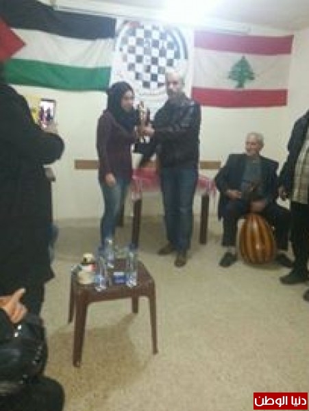 ثم قدم الفنان الفلسطيني ابو العوض بعض الأغاني الثورية التي امتعت الحضور، وبعد ذلك بدأ تتويج الفائزين الناشئين في دورة الشطرنج التي اقامها الملتقى بهاتين المناسبتين حيث قدم السيد محمود جابر ميدالية حاز عليها الطفل محمد عوض لإلتزامه وعطائه للملتقى، كما قدمت الناشطة الإجتماعية الأخت سكينة ميداليه للفائز الرابع الطفل علاء بغدادي، وقدمت الأستاذة ريم اسكندراني ميدالية للفائز الثالث حسين عبد الله،وقدم امين سر اللجنة الشعبية في مخيم شاتيلا كأس للفائز الثاني الطفل عبد الحليم ناصر، هذا وقد قدّم الأخ علي ابو عبد الله للفائزة بالمركز الأول اللاعبة سمية هاشم