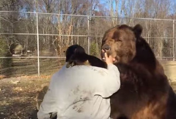 شاهد.. علاقة حب فريدة بين روسي ودب ضخم