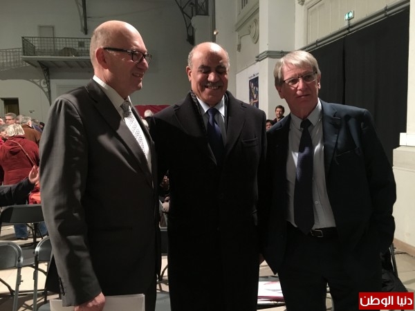 سفير فلسطين في فرنسا سلمان الهرفي بالسيد ديديه بيارد رئيس بلدية مدينة سان دوني الملاصقة لباريس وذلك في الحفل الذي نظمته البلدية احتفاء بالعام الجديد حضره النائب في البرلمان الفرنسي ورئيس بلدية سان دوني السابق السيد باتريك