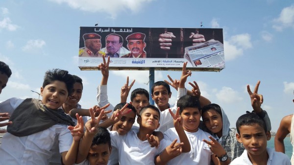إزاحة الستار عن لوحة " أطلقوا آسرانا " في شارع الملك سلمان بن عبد العزيز بالعاصمة عدن