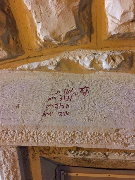 في عمل تخريبي وعنصري جديد ضد المسيحيين في القدس, كُتِبت عبارات باللغة العبرية الليلة الماضية على جدران وأبواب " رقاد العذراء " ( الدورميتسيون, على جبل صهيون في القدس ) ضد السيد المسيح وداعية أيضا لذبح المسيحيين وارسالهم الى جهنم .