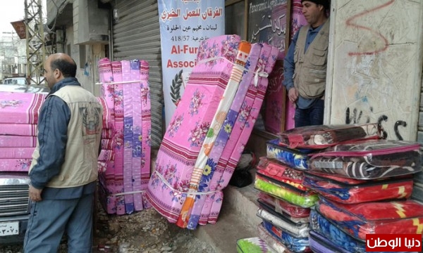 وزعت جمعية الفرقان للعمل الخيري وبتمويل من فاعل خير اغطية وفرش ومواد غذائية لعدد من العائلات النازحه من سوريا الى مخيم عين الحلوه كاغاثة طارئه لهذه العائلات التي وصلت حديثا وذلك سعياً من الجمعيه في تخفيف معاناتهم ليتجاوزوا هذه المحنه الصعبة خصوصا في فصل الشتاء.