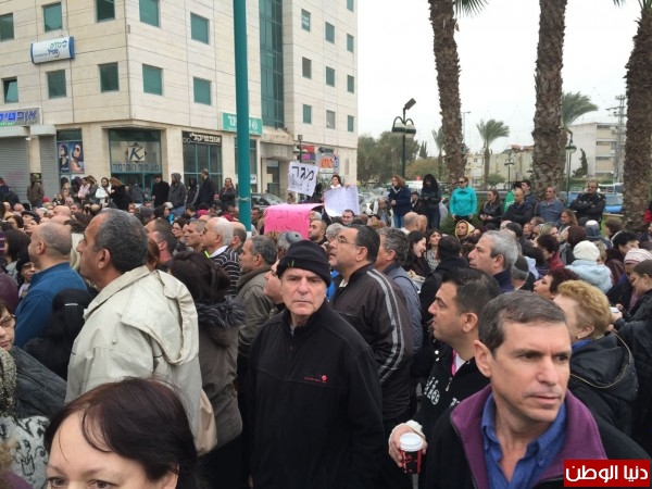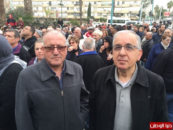 مظاهرة حاشدة وصاخبة لعمال شركة ميغا أمام مبنى محكمة العمل القطرية في مدينة اللد