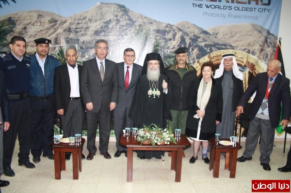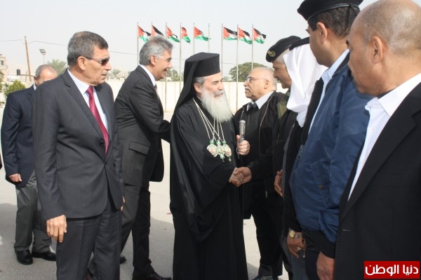 وشارك في استقبال البطريرك ثيوفولس ووفد رجال الدين محمد جلايطة رئيس بلدية اريحا والعميد ركن محمد الاعرج قائد منطقة اريحا والأغوار وقادة الأجهزة الأمنية وممثلو فصائل منظمة التحرير الفلسطينية.