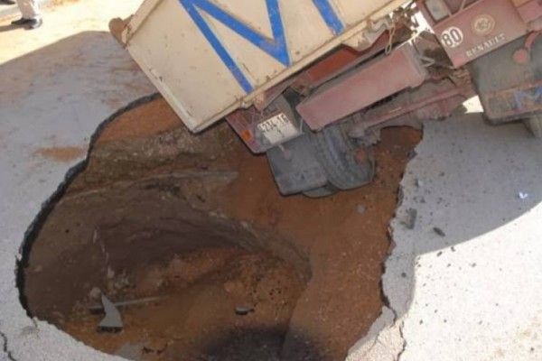 منوعات فيديو| حفرة تظهر على الطريق فجأة وتبتلع شاحنة! 2016-01-18 رابط مختصر: تابعنا أيضا عبر فيسبوك facebook.com/alwatanvoice
